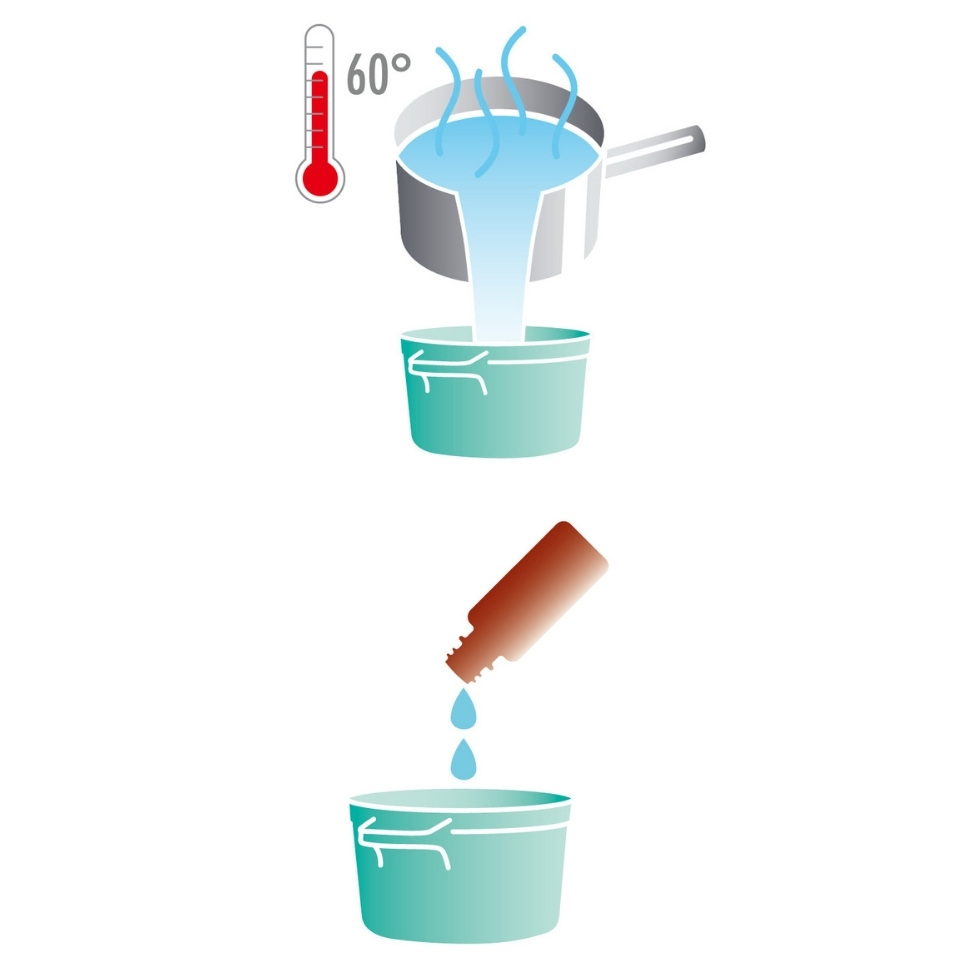 - Unteren Teil des Inhalators (Wasserbehälter) mit 2–3 dl heissem, nicht kochendem Wasser (ca. 60 °C) füllen